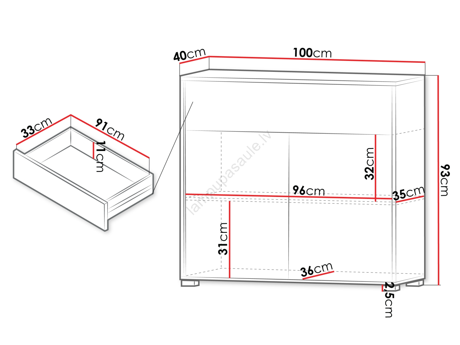 • Viena plaša atvilktne un divdurvju skapītis ar plauktiem piedāvā ideālu uzglabāšanas vietu pārskatīgam jūsu apģērbu, dokumentu un citu nepieciešamo lietu izvietojumam.