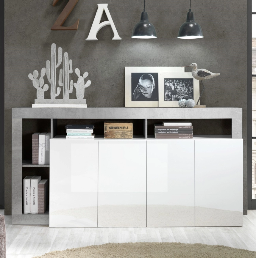 Kumode LENOR, balta/pelēka (betona apdare) | Lampupasaule