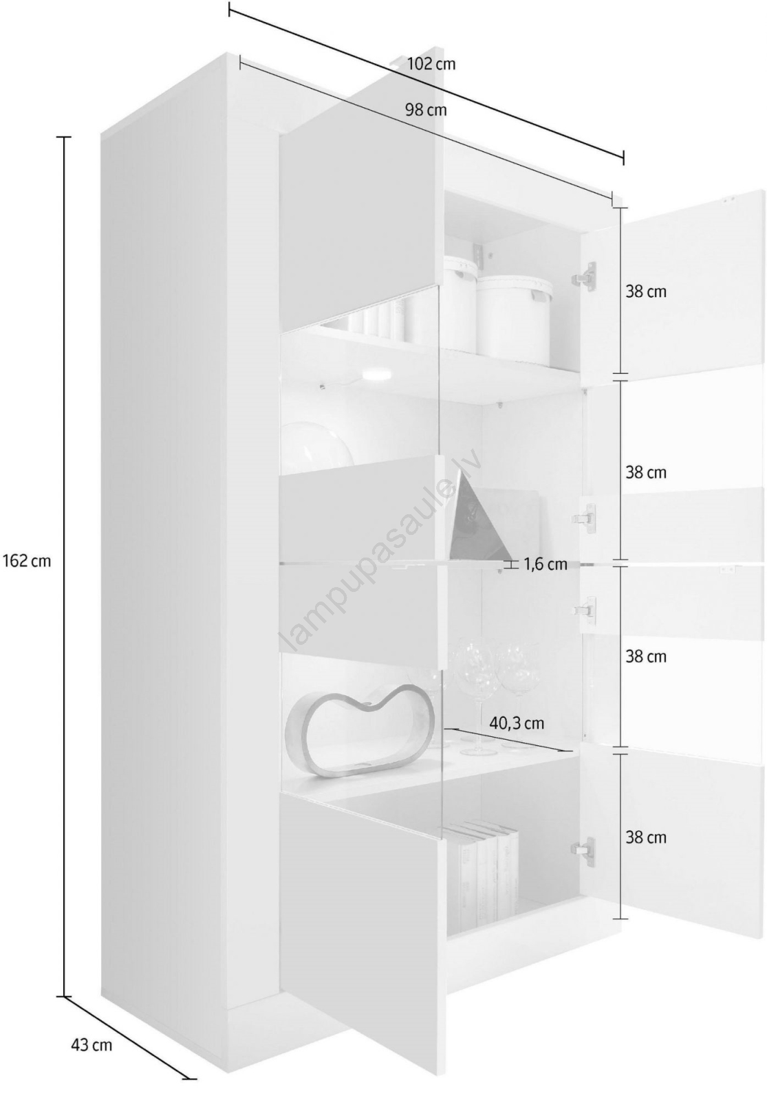 • Aprīkota ar integrētu zilu LED apgaismojumu, kas piešķir interjeram mūsdienīgu un mājīgu atmosfēru.