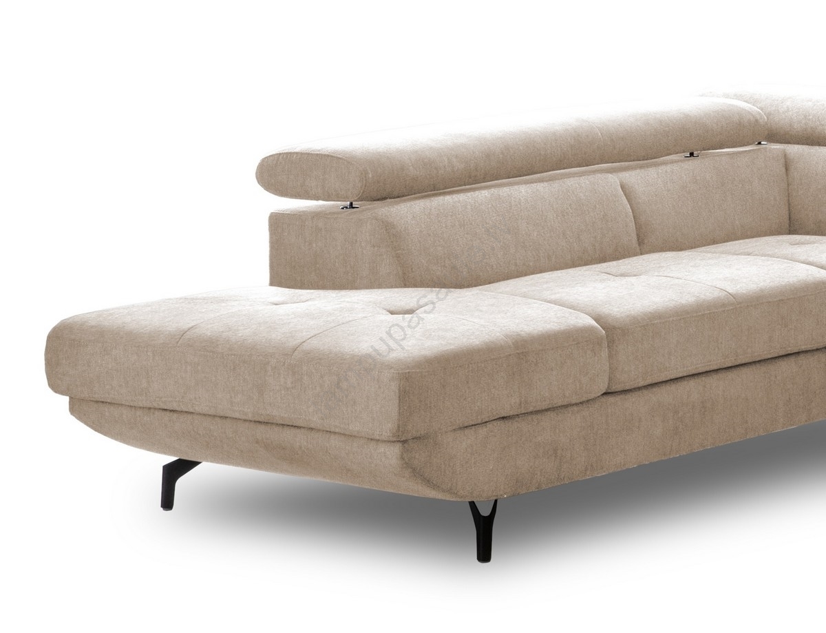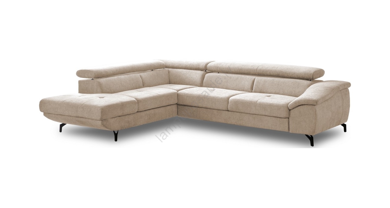 • Izvelkamais stūra dīvāns ar uzglabāšanas nodalījumu L formā BRESCIA, labais, bēšs