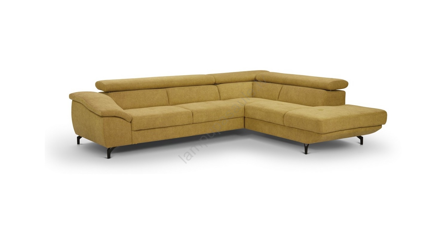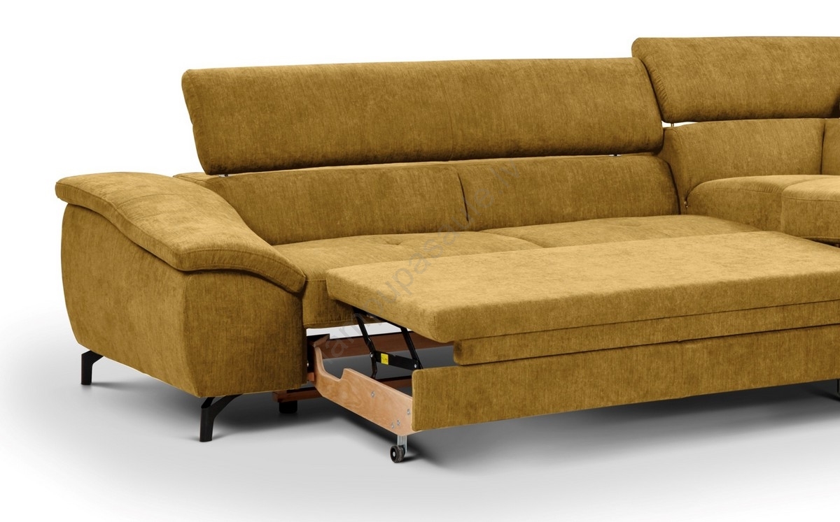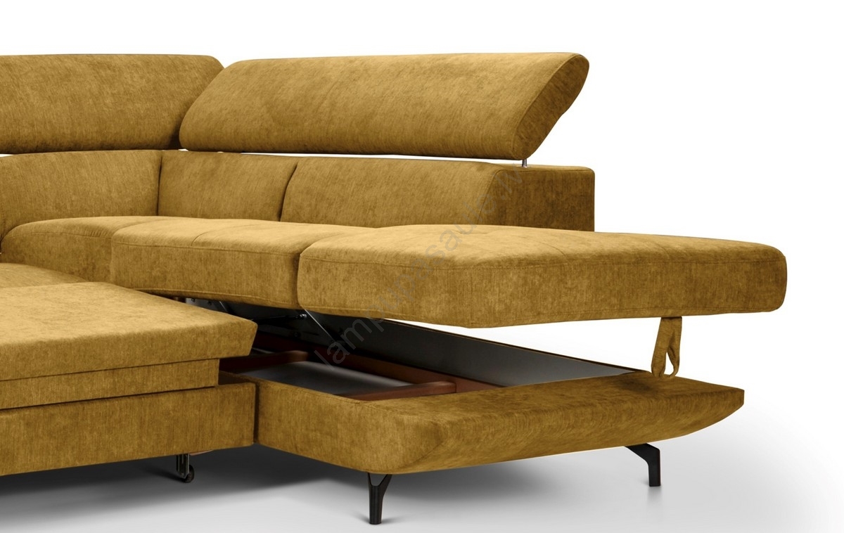• Izvelkamais stūra dīvāns ar uzglabāšanas nodalījumu L formā BRESCIA labais dzeltenais