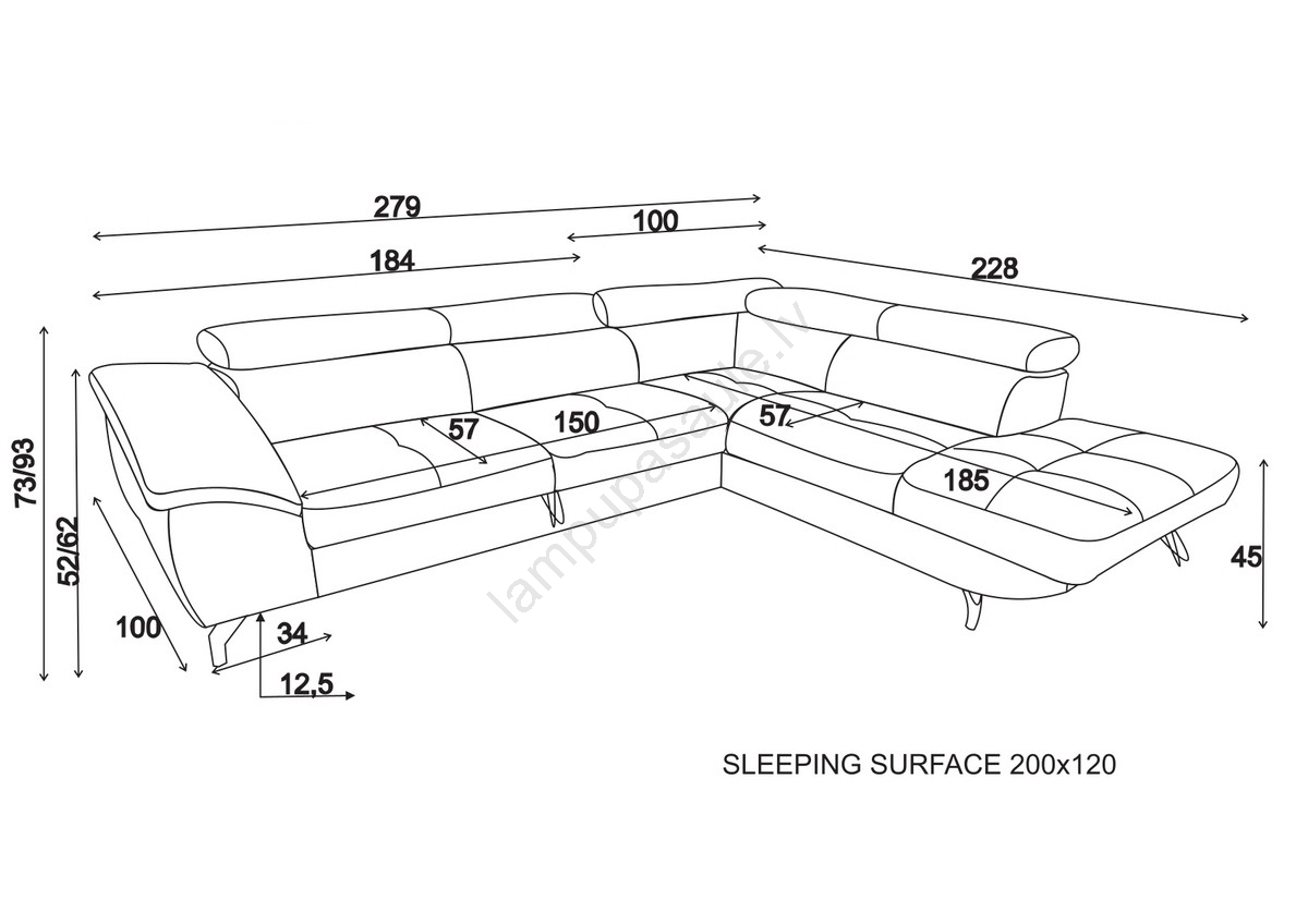 • Dīvāns aprīkots ar ļoti lielu uzglabāšanas nodalījumu, kas piedāvā pietiekami daudz vietas segām, spilveniem un citiem nepieciešamajiem priekšmetiem.