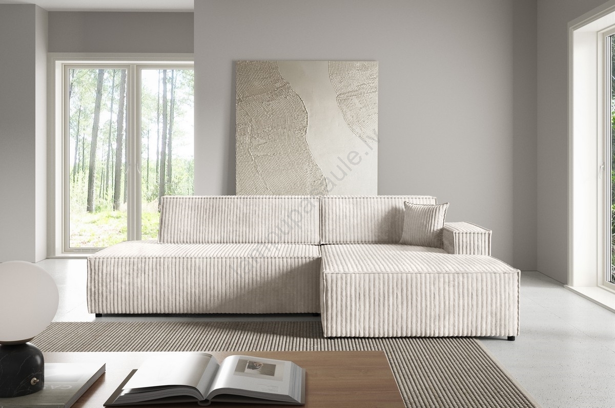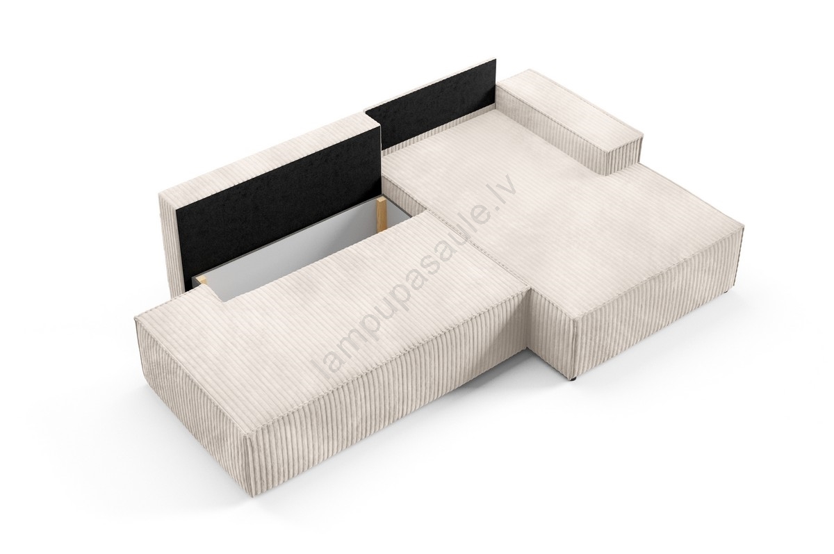 Izvelkams L formas stūra dīvāns ar uzglabāšanas nodalījumu TERAMO, labais, bēšs