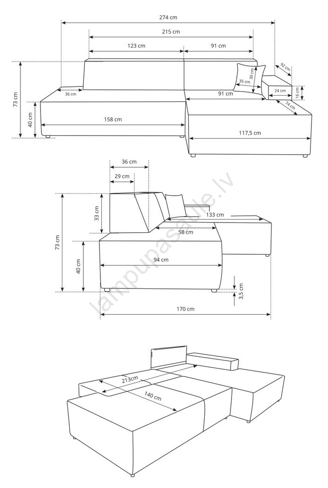 • Dīvānam ir plaša uzglabāšanas kaste gultas veļas un citu sezonālo mantu uzglabāšanai.