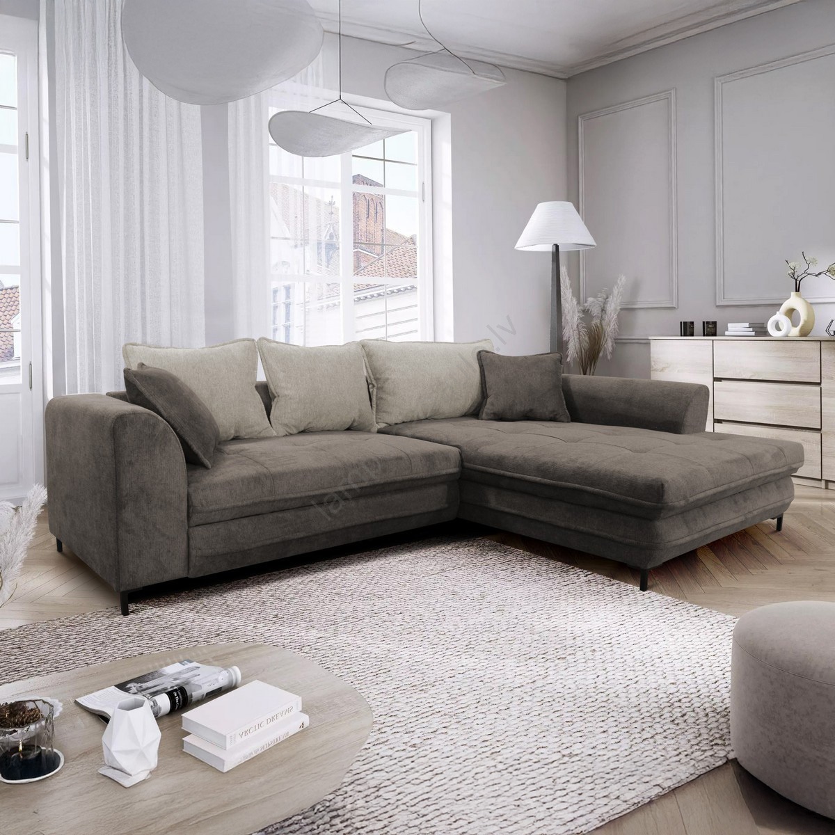 • Izvelkams stūra dīvāns ir ideāla izvēle ikvienam, kurš meklē stila, ērtuma un praktiskuma kombināciju.