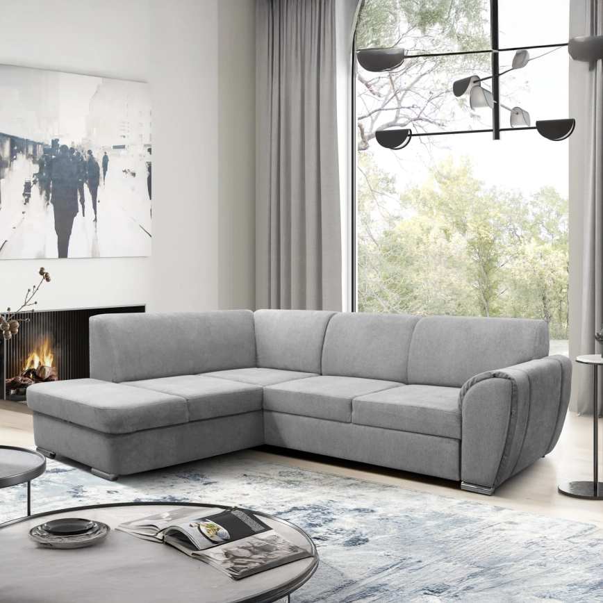 Izvelkams L veida kreisais stūra dīvāns SERPA ar uzglabāšanas nodalījumu, pelēks | Lampupasaule