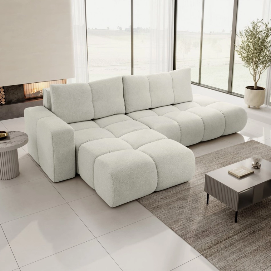 • Mūsdienīgs izvelkamais stūra dīvāns ALMADA (kreisais stūris) ir ideāla izvēle ikvienam, kas meklē stila, komforta un praktiskuma kombināciju.