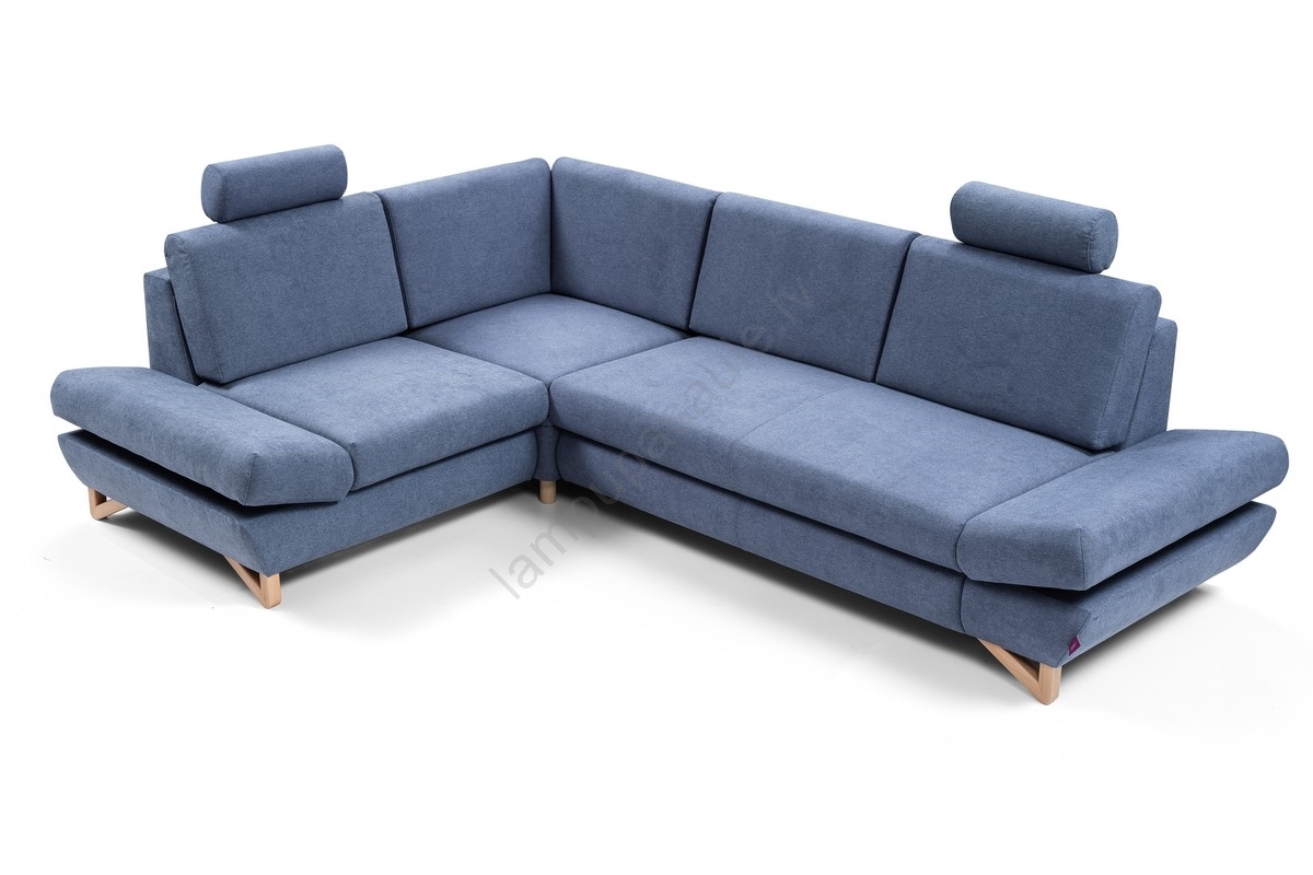 Izvelkams polsterēts L formas stūra dīvāns AVESTA, kreisais, zils, ar uzglabāšanas nodalījumu | Lamp
