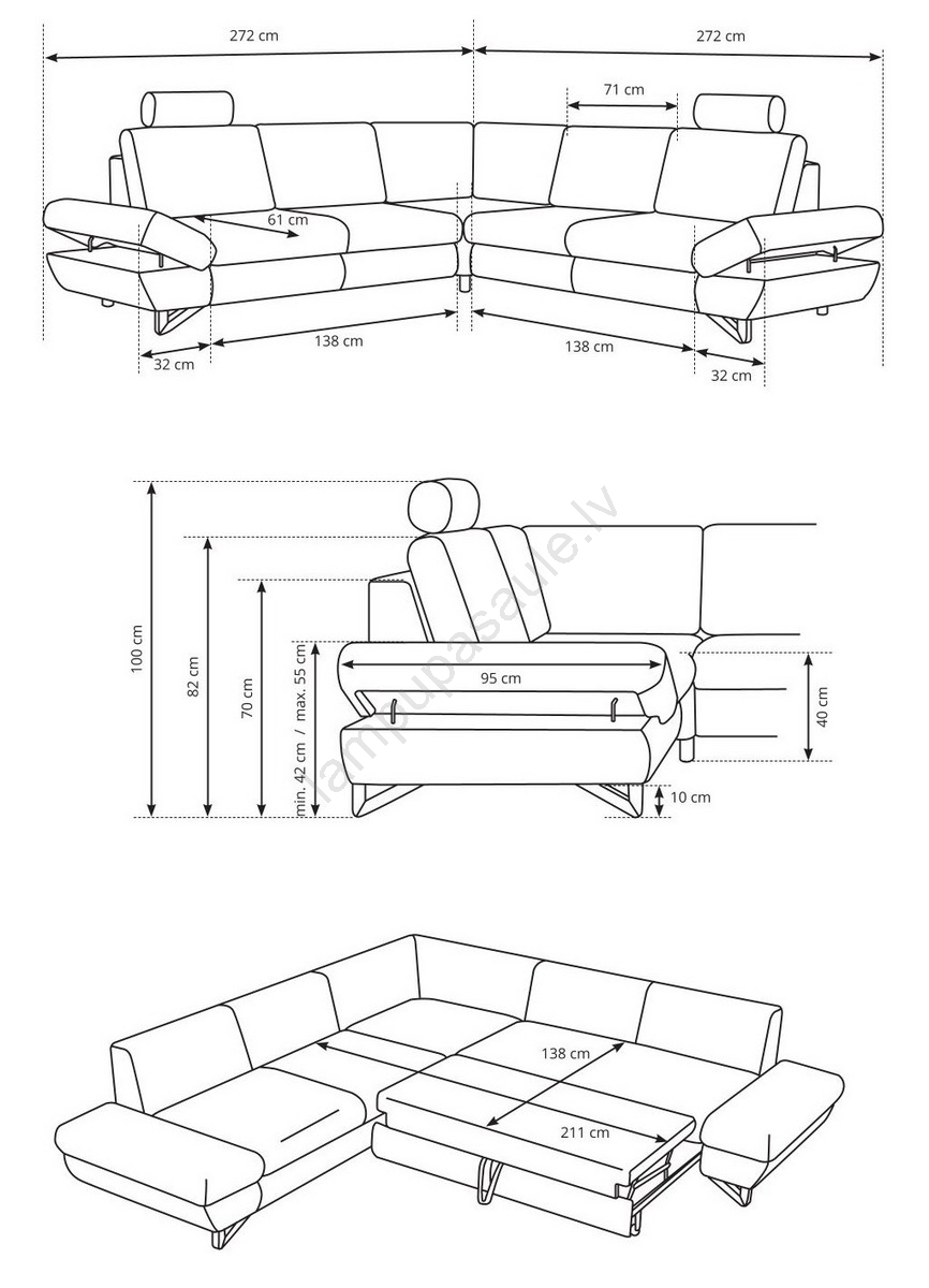 • Dīvāns ir aprīkots ar plašu uzglabāšanas nodalījumu gultas veļas un citu sezonas lietu uzglabāšanai.