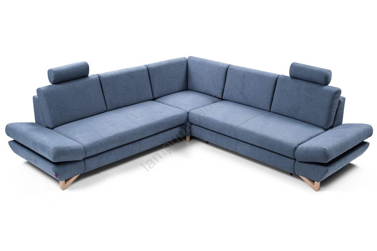 • Izvelkams L-formas tapicerēts stūra dīvāns AVESTA ar uzglabāšanas nodalījumu, labās puses, zils