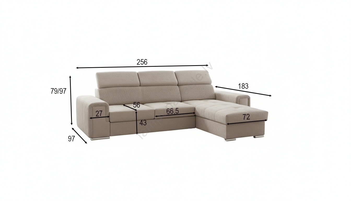 • Dīvāns piedāvā 3 regulējamus galvas balstus ar 5 pozīcijām.
