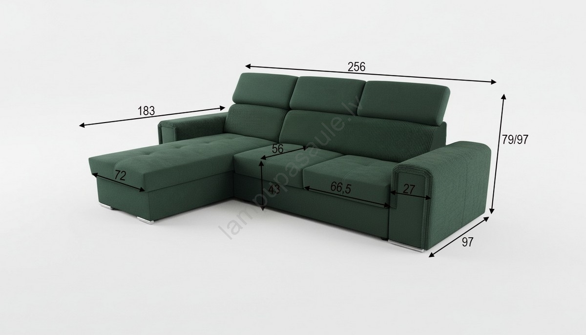 • Dīvāns piedāvā 3 regulējamus galvas balstus ar 5 pozīcijām.