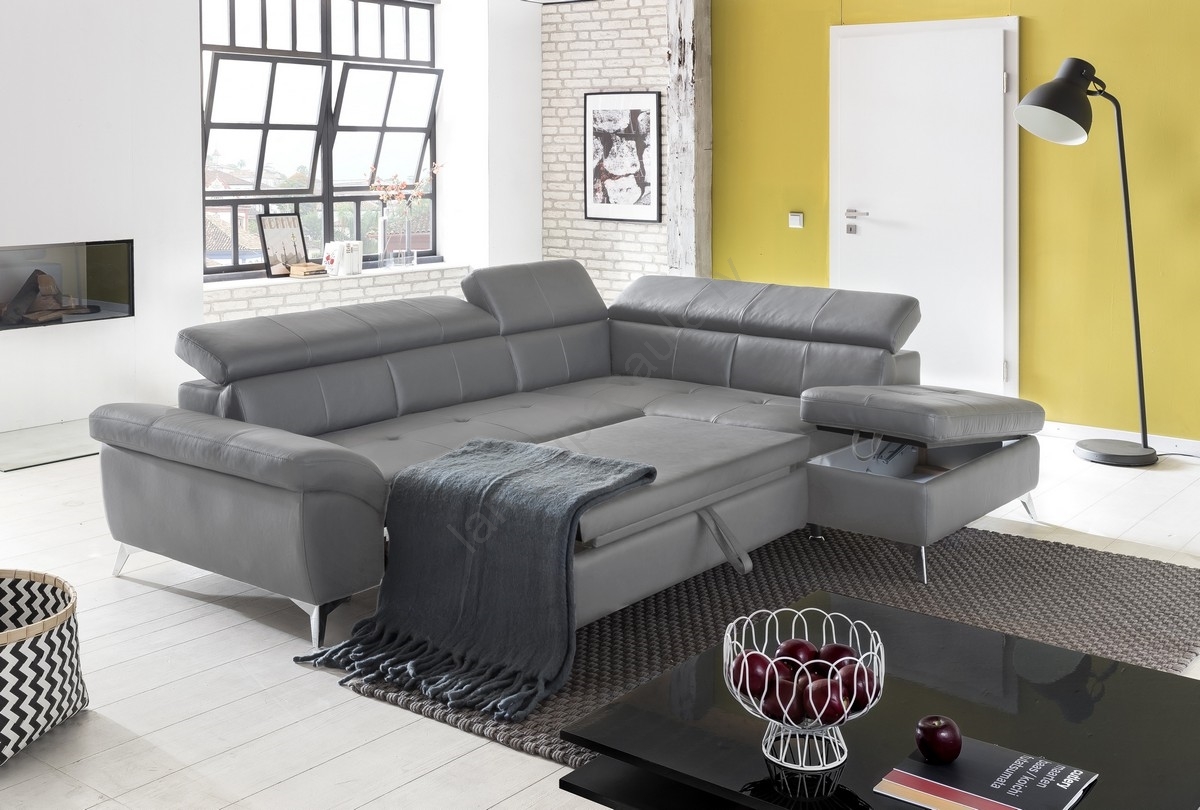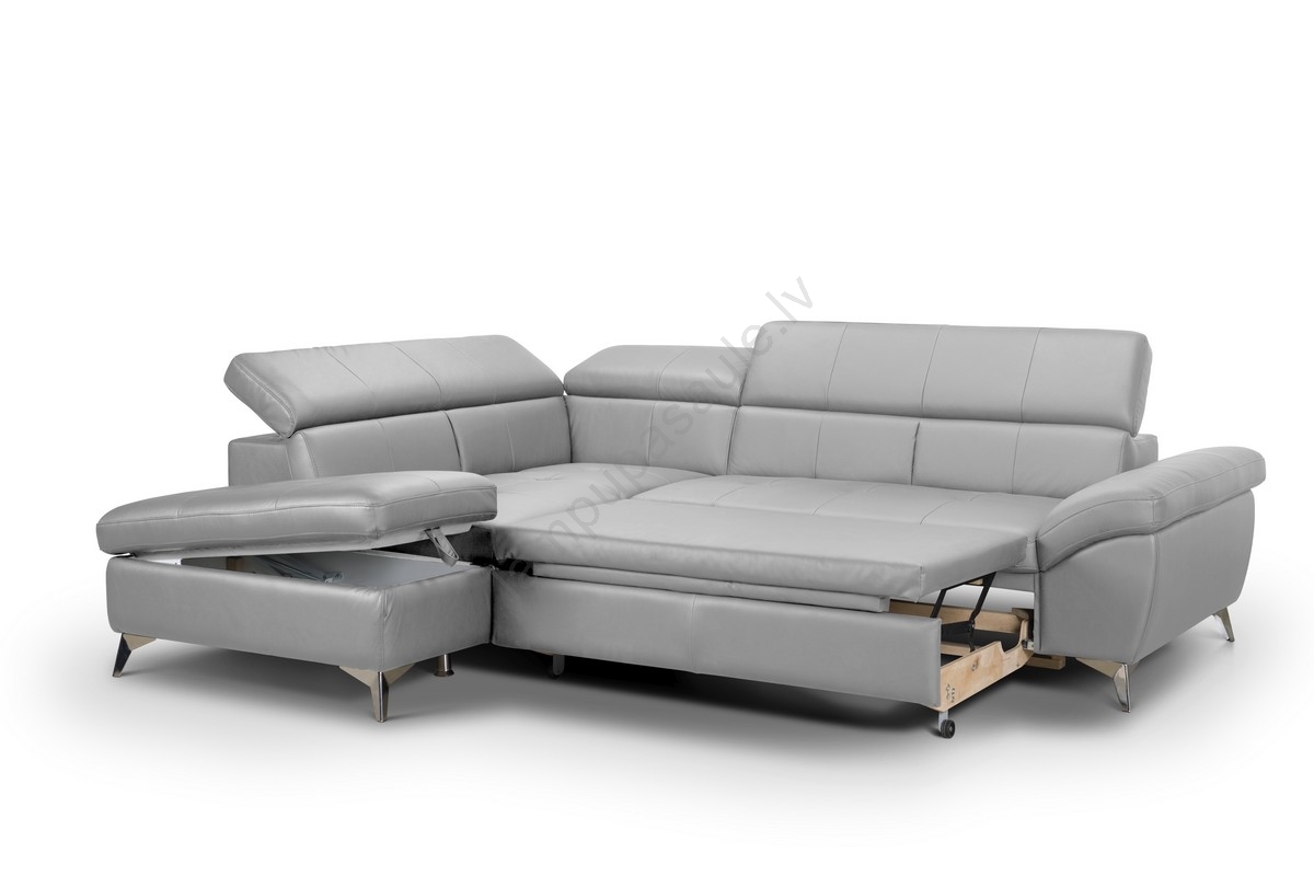 • Izvelkamais stūra ādas dīvāns SALERNO II, labais stūris, pelēks