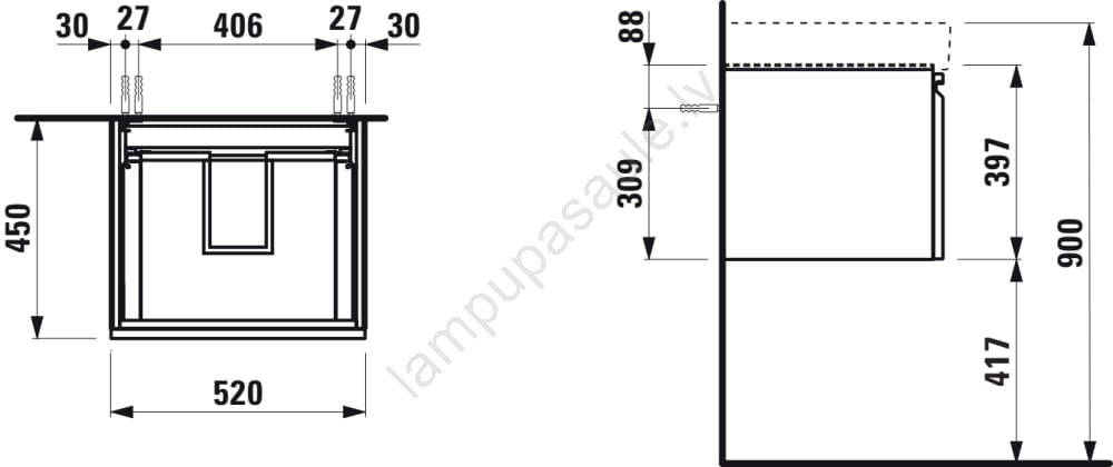 LAUFEN H4833510964751 - PRO izlietnes skapis, 52 cm, balts | Lampupasaule