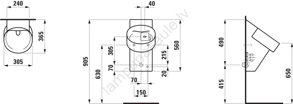 • Pisuārs ir bez apmales, kas novērš netīrumu un baktēriju uzkrāšanās vietas.