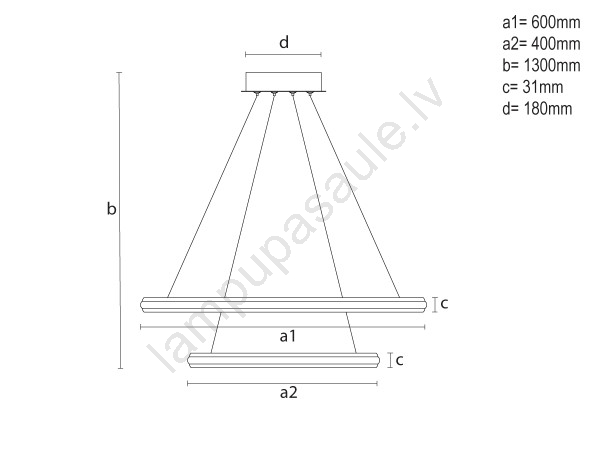 • Regulējama LED lustra uz troses, 90 W, 230 V, 3000–6500 K, Ø 60 cm, ar tālvadības pulti