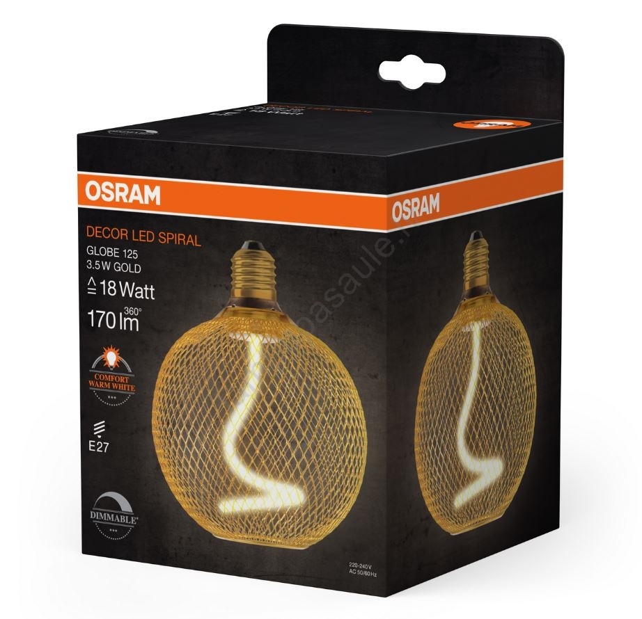 LED Aptumšojama spuldze DECOR FILAMENT G125 E27/3,5W/230V 1800K zelta - Osram | Lampupasaule