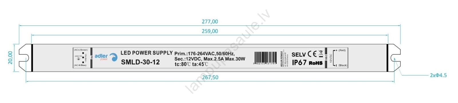 LED Elektriskais transformators DRIVER 30W/230V/12V IP67