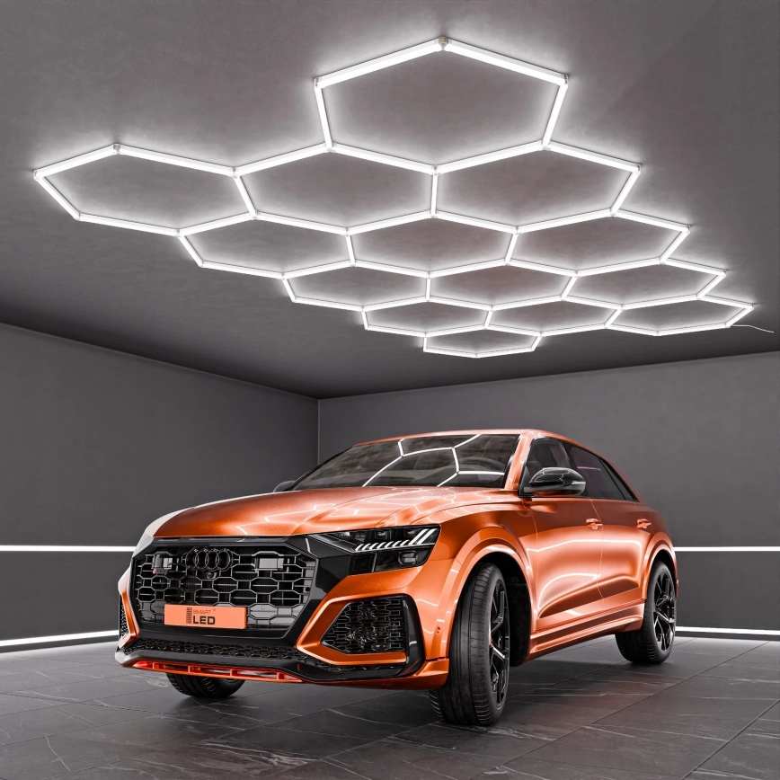 • Pateicoties sešstūrveida konstrukcijai apgaismojums kalpo gan kā estētisks elements, gan kā funkcionāla apgaismes sistēma.