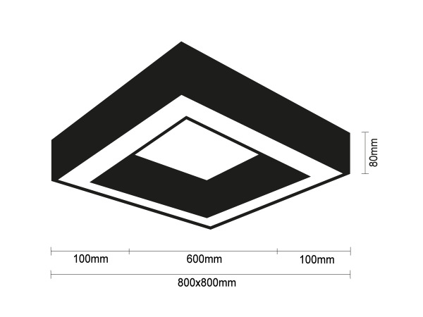 LED griestu lampa LED/100W/230V 3000/4000/6500K 80x80 cm melna