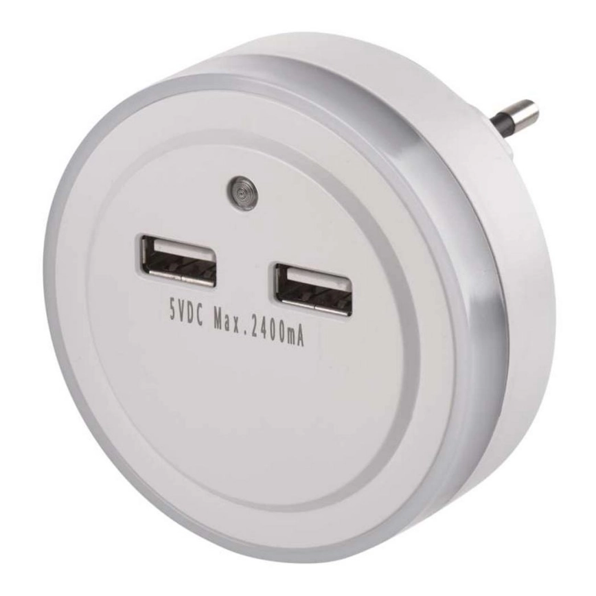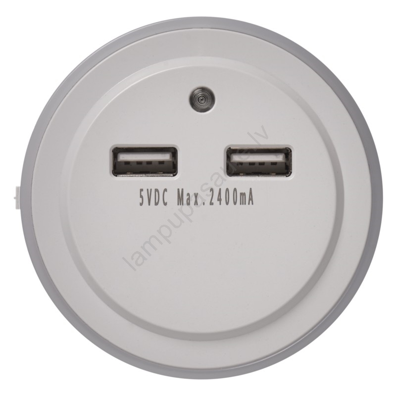 LED nakts gaismeklis kontaktligzdai ar fotosensoru+2xUSB 3xLED/0,3W/230V | Lampupasaule