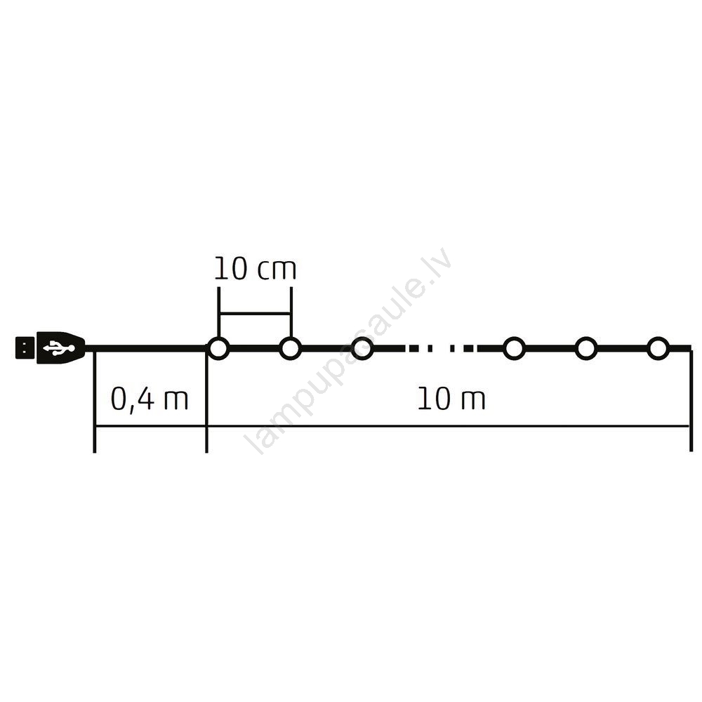 • Apgaismotās daļas garums ir 10 metri un tajā ir kopumā 100 LED diodes.