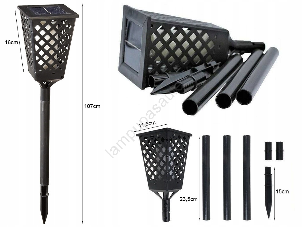 LED saules lampa ar sensoru LED/0,6W/5,5V IP65 2000 mAh 107 cm melna | Lampupasaule