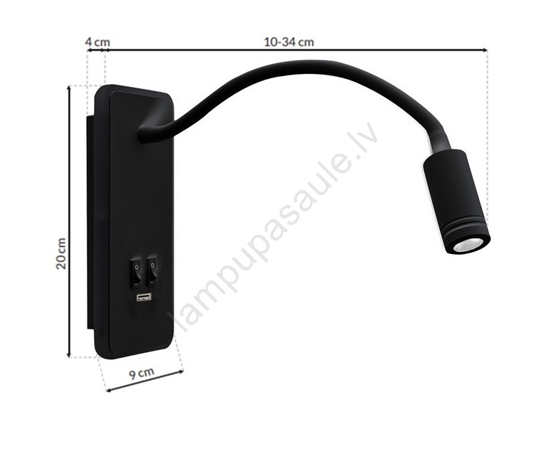• Elastīga LED sienas lampiņa ar USB BASE LED/8W+LED/2W/230V melna