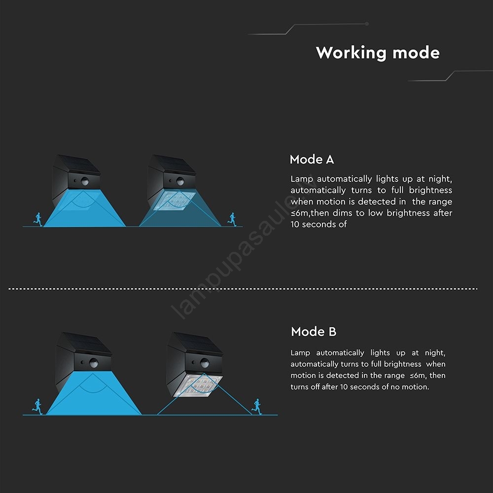 LED sienas saules gaismeklis ar sensoru LED/2,5W/3,7V IP65 1200 mAh melns | Lampupasaule