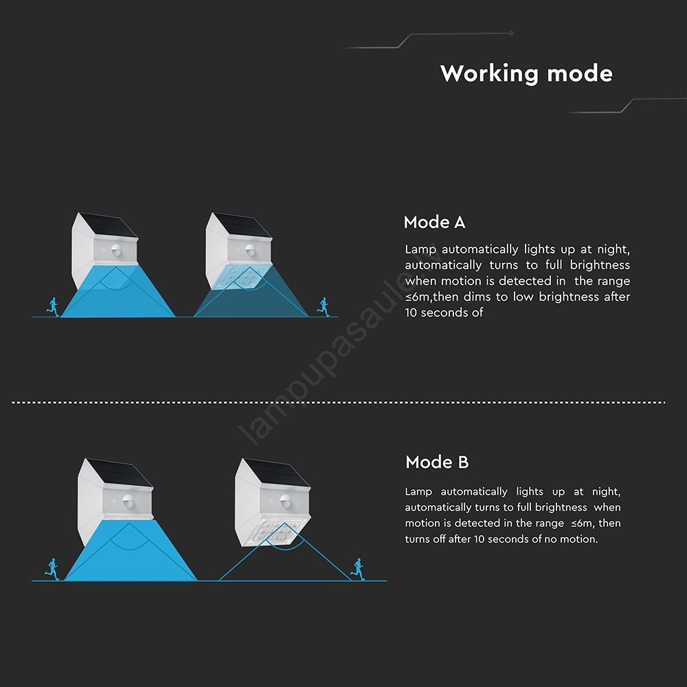 • LED sienas saules gaismeklis ar sensoru LED/2,5W/3,7V 3000/4000/6000K IP65 1200 mAh balts