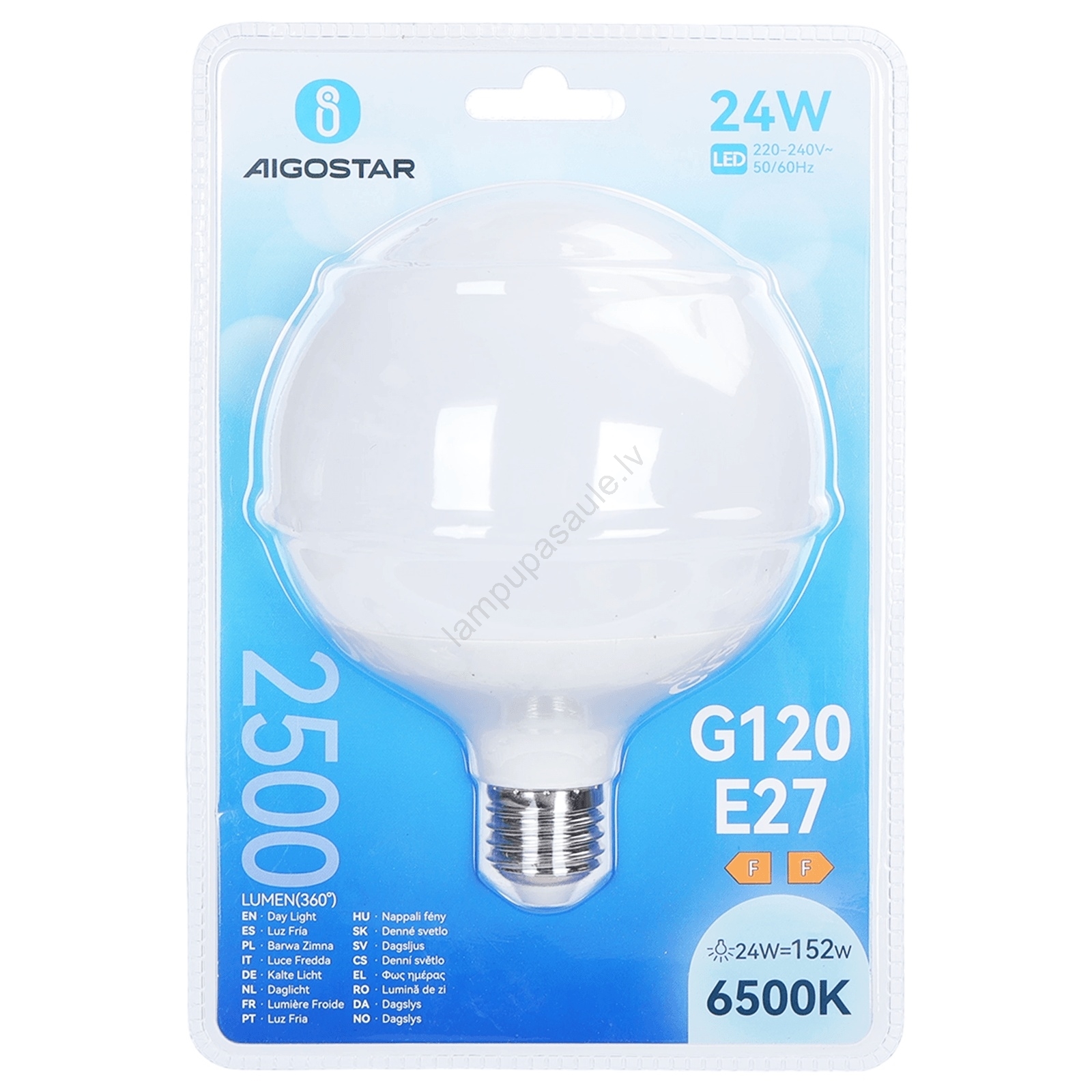 LED spuldze G120 E27/24W/230V 6500K - Aigostar Augstas kvalitātes dizains nodrošinās perfektu jūsu interjera apgaismojumu. E27 kategorija ir veltīta spuldzēm ar tādu pašu cokolu. Mūsu e-veikalā varat izvēlēties spuldzes ar tradicionālo kvēldiegu vai modernās LED spuldzes, kas ir energoefektīvākas un ar ilgāku darbības laiku.