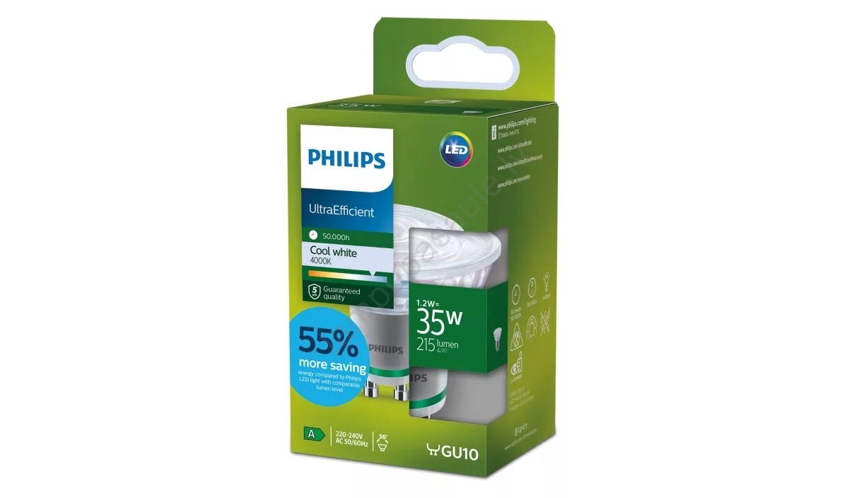 • LED spuldze ULTRAEFFICIENT Philips PAR16 GU10/1,2W/230V 4000K