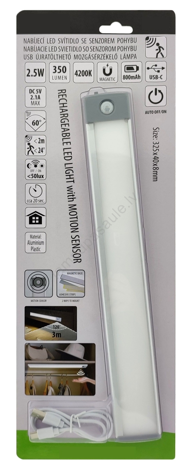 LED uzlādējams mēbeļu apgaismojums ar sensoru LED/2,5W/5V USB 800mAh 4200K 32,5c | Lampupasaule