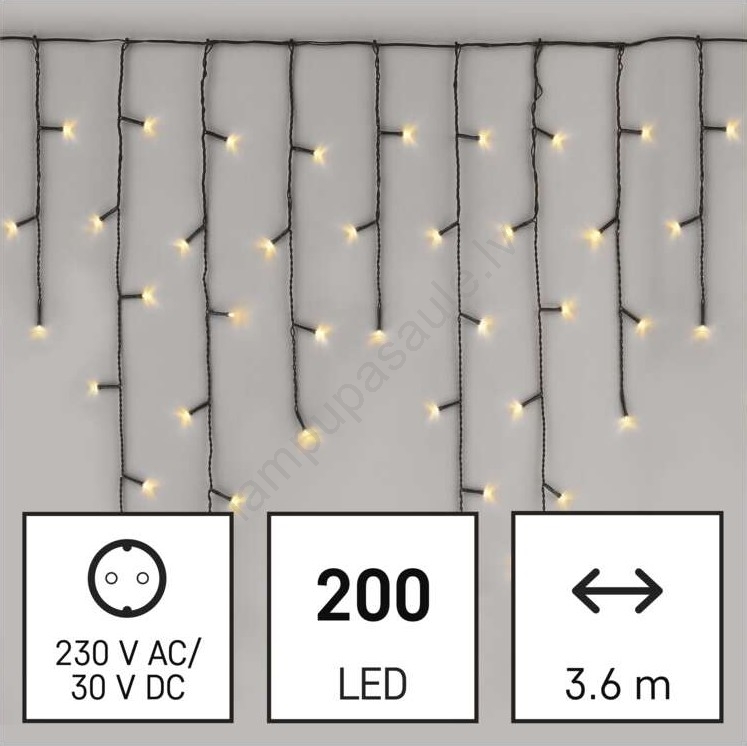 LED āra virtene 200 LED / 8 režīmi, 8,6 m, IP44, siltā balta