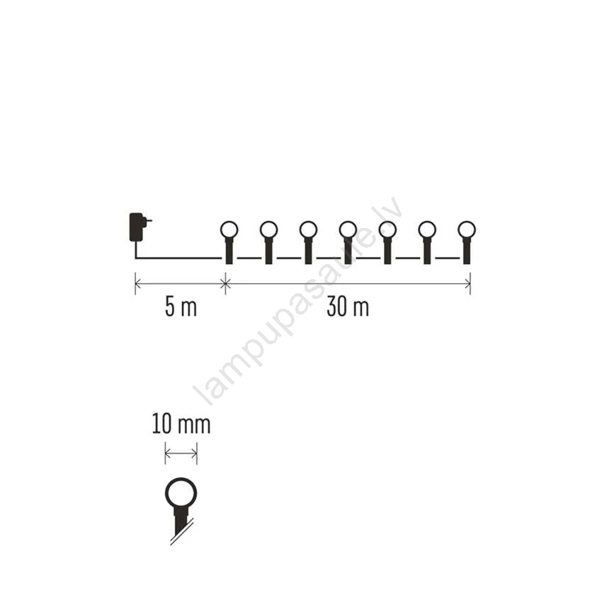 • Apgaismotā kabeļa garums: 30 m.
