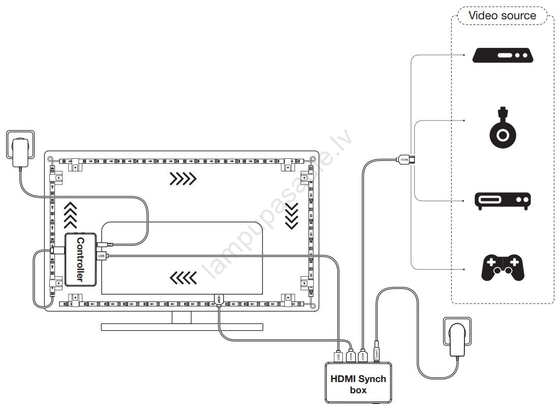 Ledvance-LED RGB Aptumšojama josla televizoram SYNCH BOX FLEX 4,5m LED/18W/230V Wi-Fi | Lampupasaule