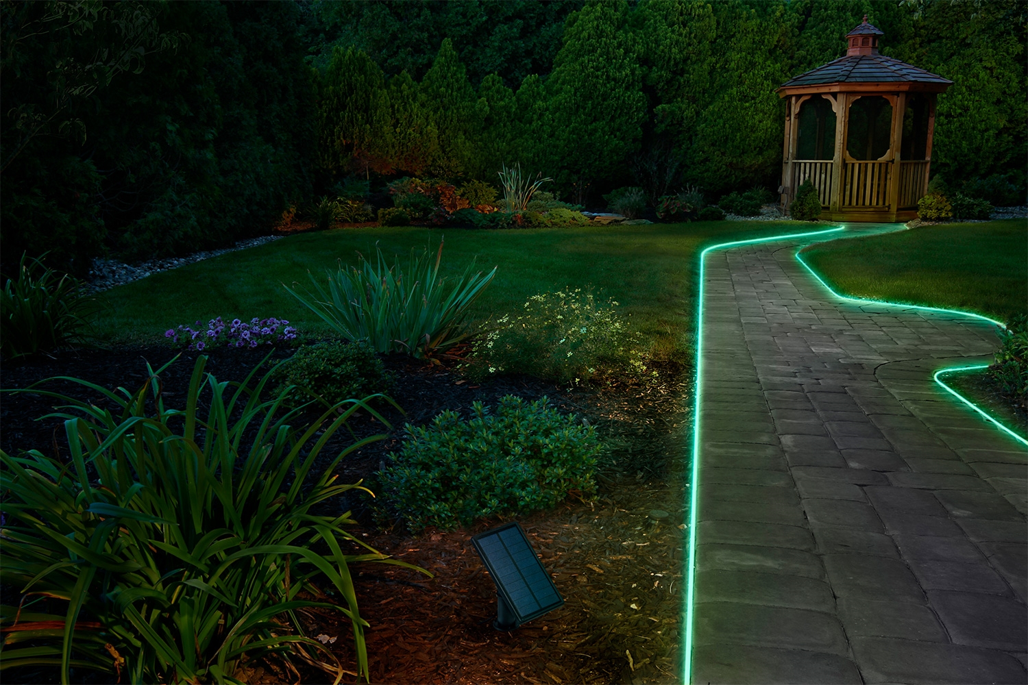 • LED RGBW saules lente ar regulējamu spilgtumu un tālvadības pulti.