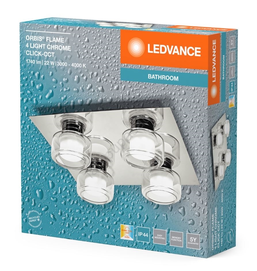 • Ledvance - LED Vannas istabas griestu lampa ORBIS FLAME 4xLED/5,5W/230V 3000/4000K IP44 hroms