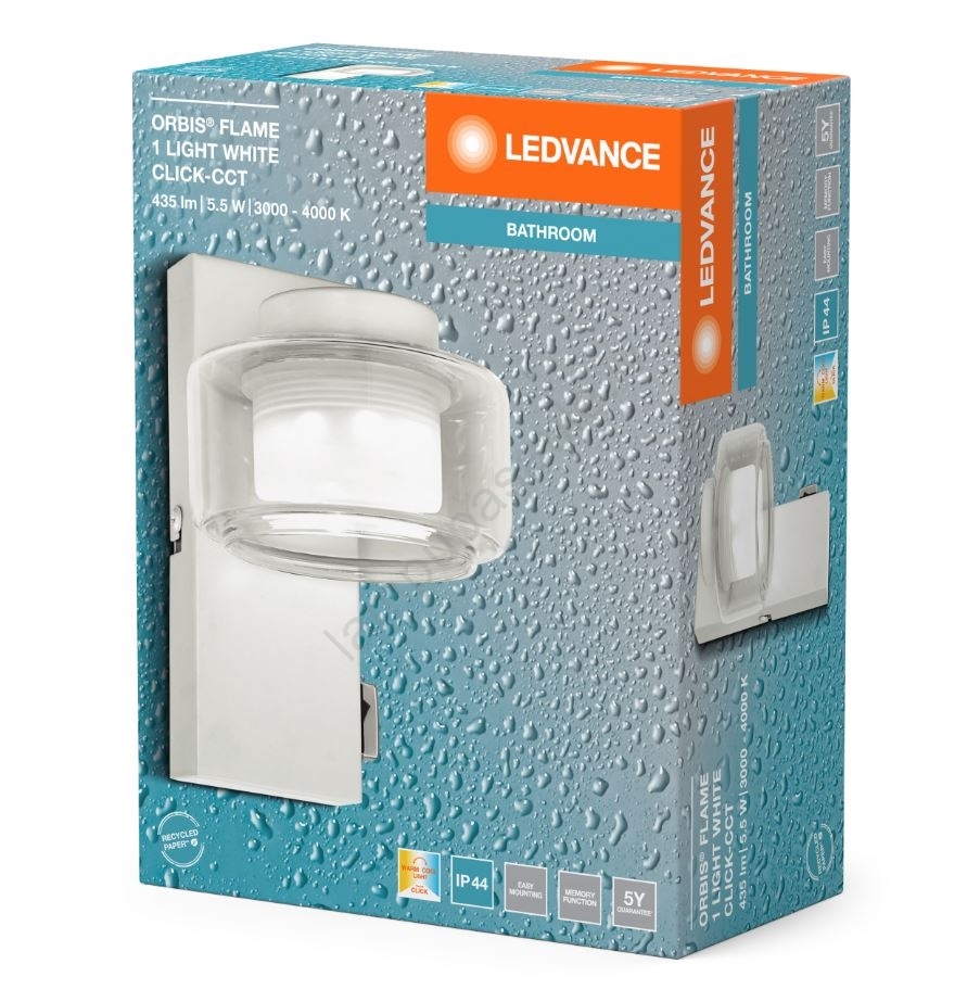 Ledvance - LED Vannas istabas sienas lampa ORBIS FLAME LED/5,5W/230V IP44 balta | Lampupasaule