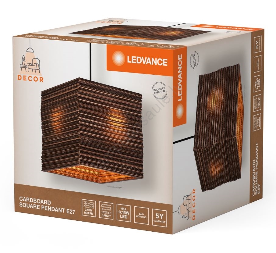 Ledvance - Lustra ar auklu DECOR CARDBOARD 1xE27/15W/230V 25x25 cm | Lampupasaule