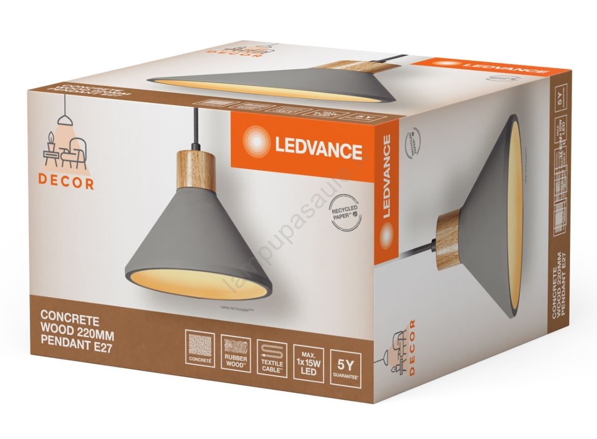 Ledvance - Lustra ar auklu DECOR CONCRETE 1xE27/15W/230V d. 22 cm betons pelēka | Lampupasaule