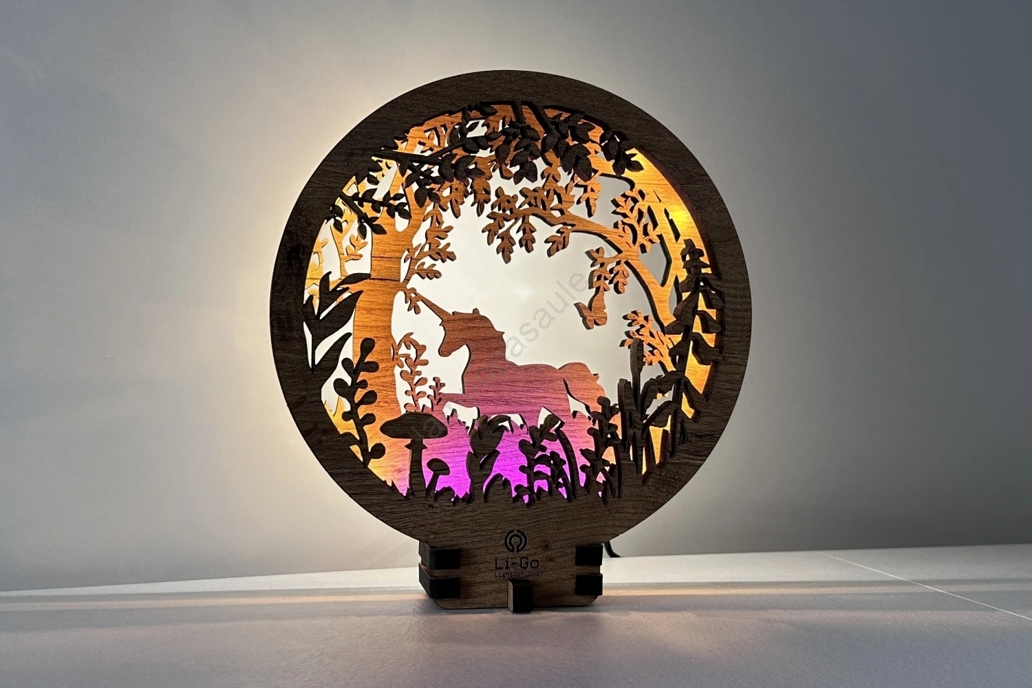Li-Go 23568/DUB2 - LED regulējama galda dekorācija LED/12W/230V 20x22 cm ozols/vienradzis