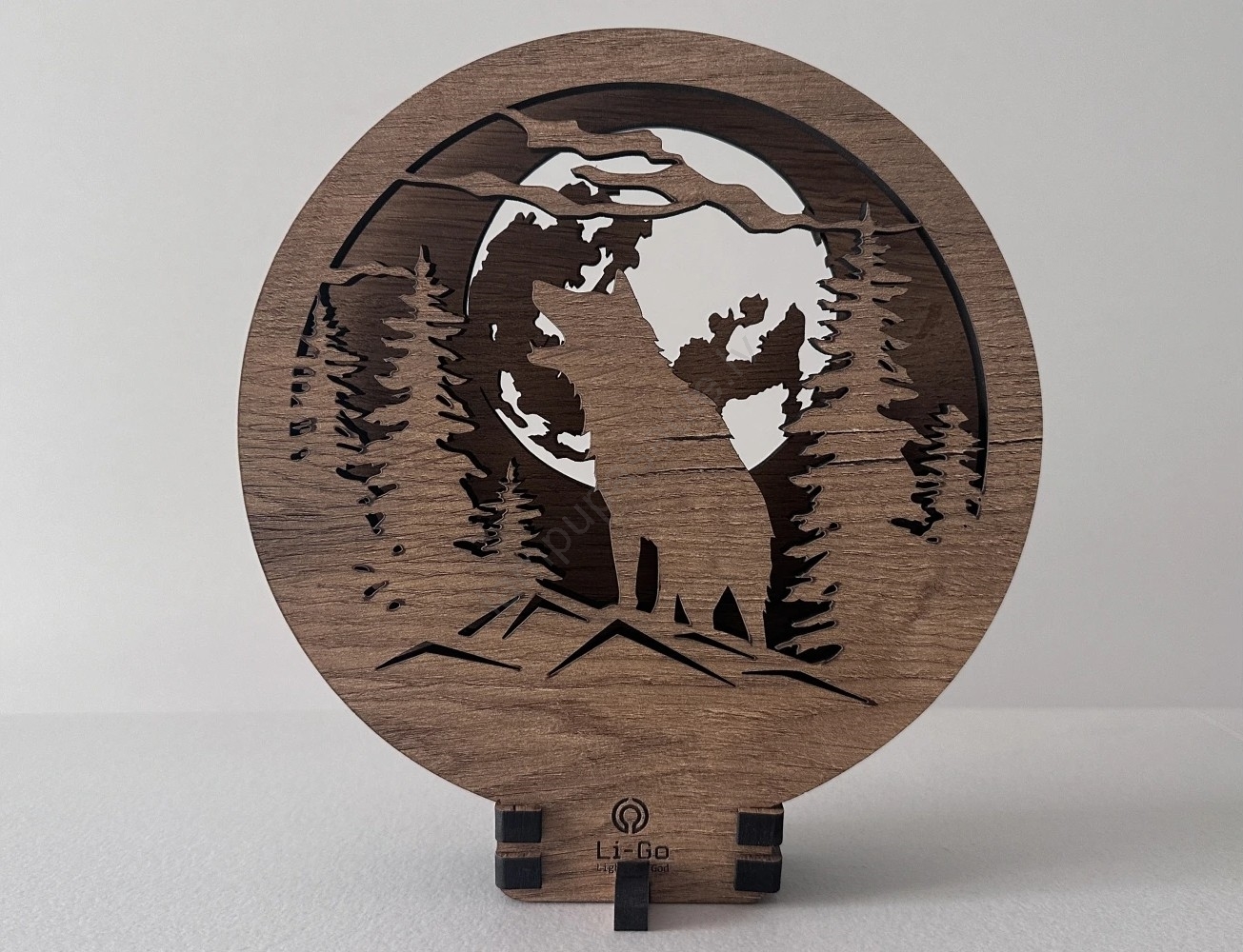Li-Go 23574/DUB2 - Regulējama LED galda dekorācija LED/12W/230V 20x22 cm ozols/Vilks un mēness