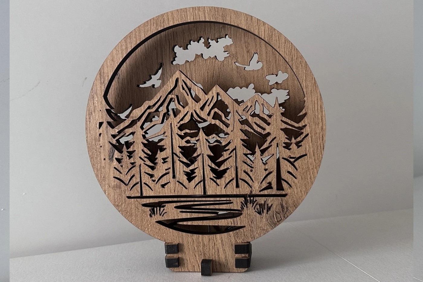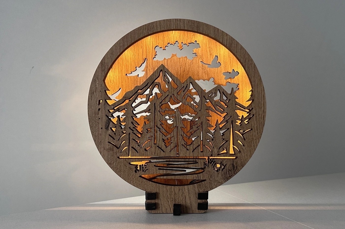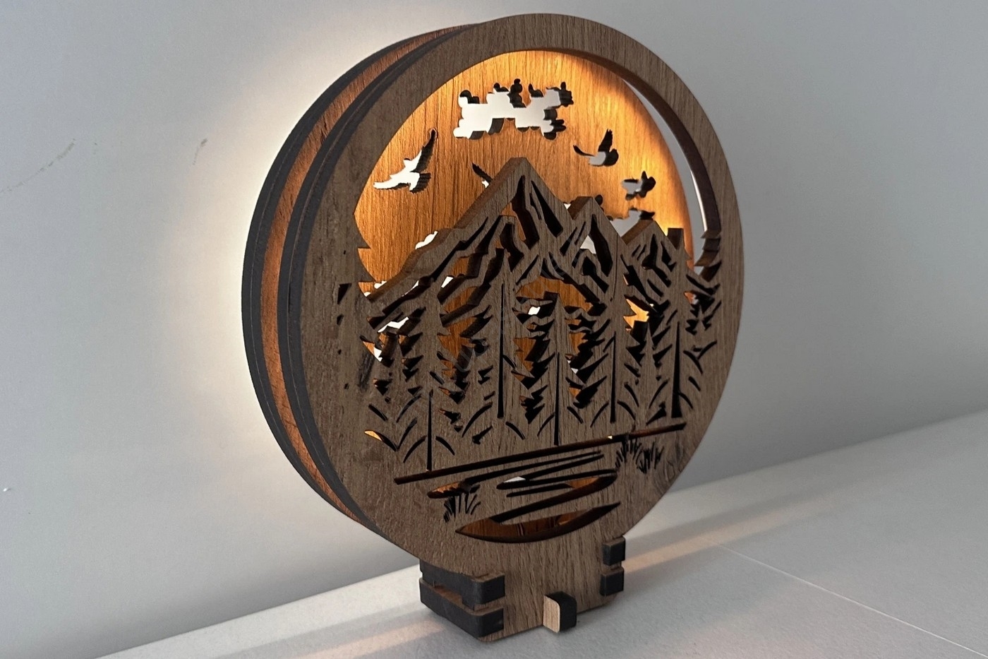 Li-Go 23583/DUB2 - LED Aptumšojama galda dekorācija LED/12W/230V 20x22 cm ozols/Kalni un mežs