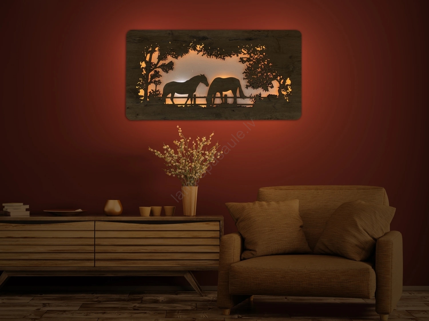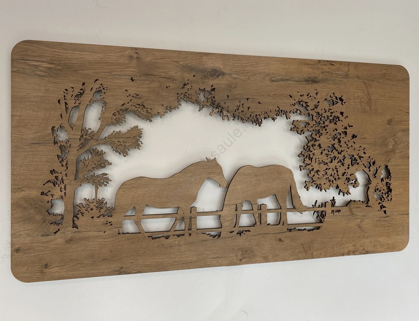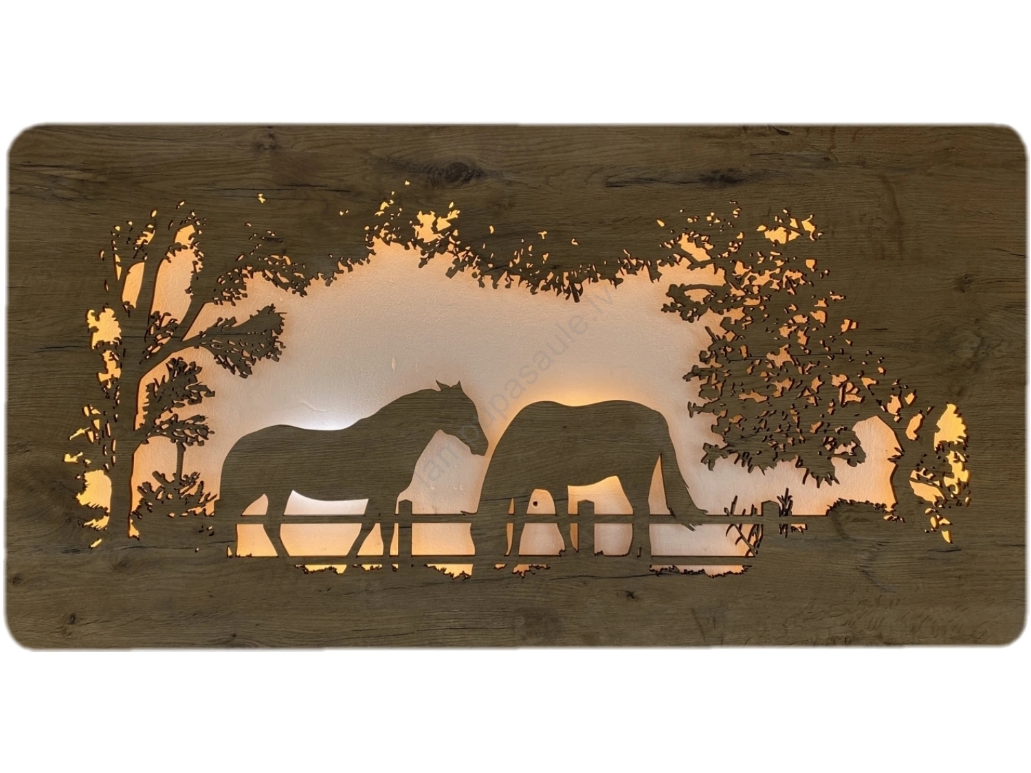 Li-Go 5012/B/4 - LED sienas dekorācija ar regulējamu spilgtumu LED/10W/5V 30000 mAh 120x60 cm ozols/zirgi + tālvadības pults