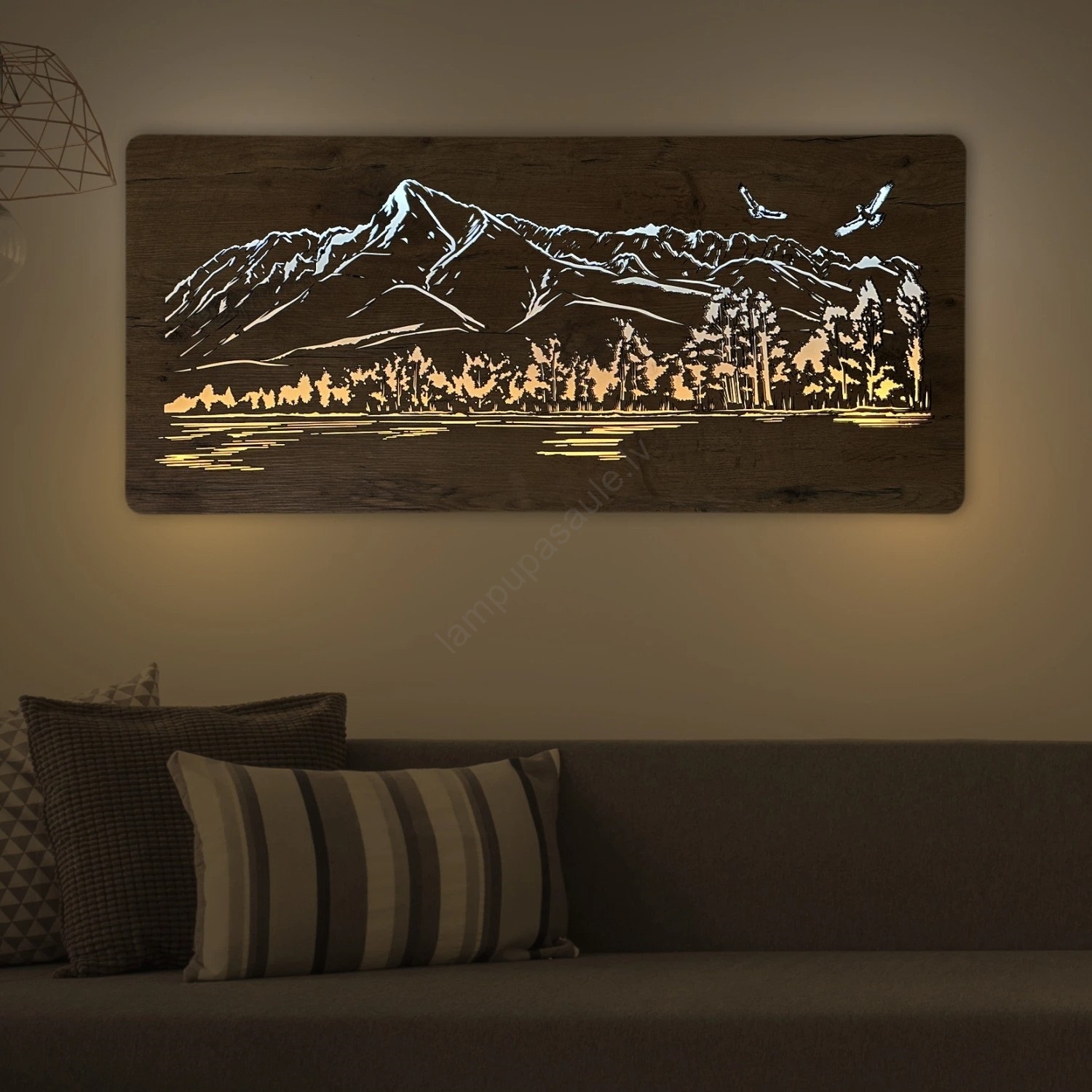 Li-Go 5589/A/DUB2 - regulējama LED sienas dekors LED/10W/5V 30000 mAh 110x50 cm ozols/kalni ar putniem