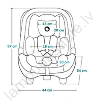 • Domājot par mazākajiem bērniem, tas ir aprīkots ar redukcijas ielikni un jostasvietas spilventiņu, kas, nospiežot sēdekli, nodrošina bērnam anatomiski pareizu pozīciju.