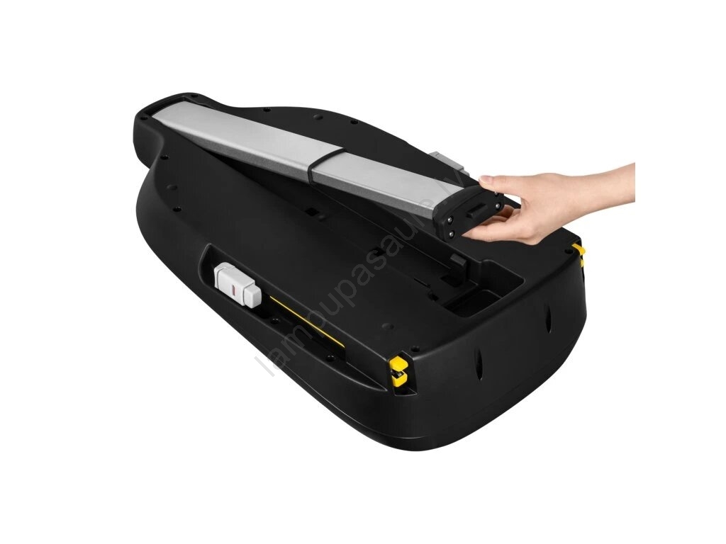 • Bāze ir saderīga ar ISOFIX sistēmu - to pietiek piestiprināt pie āķiem, kas atrodas starp automašīnas sēdekļa atzveltni un sēdekli.