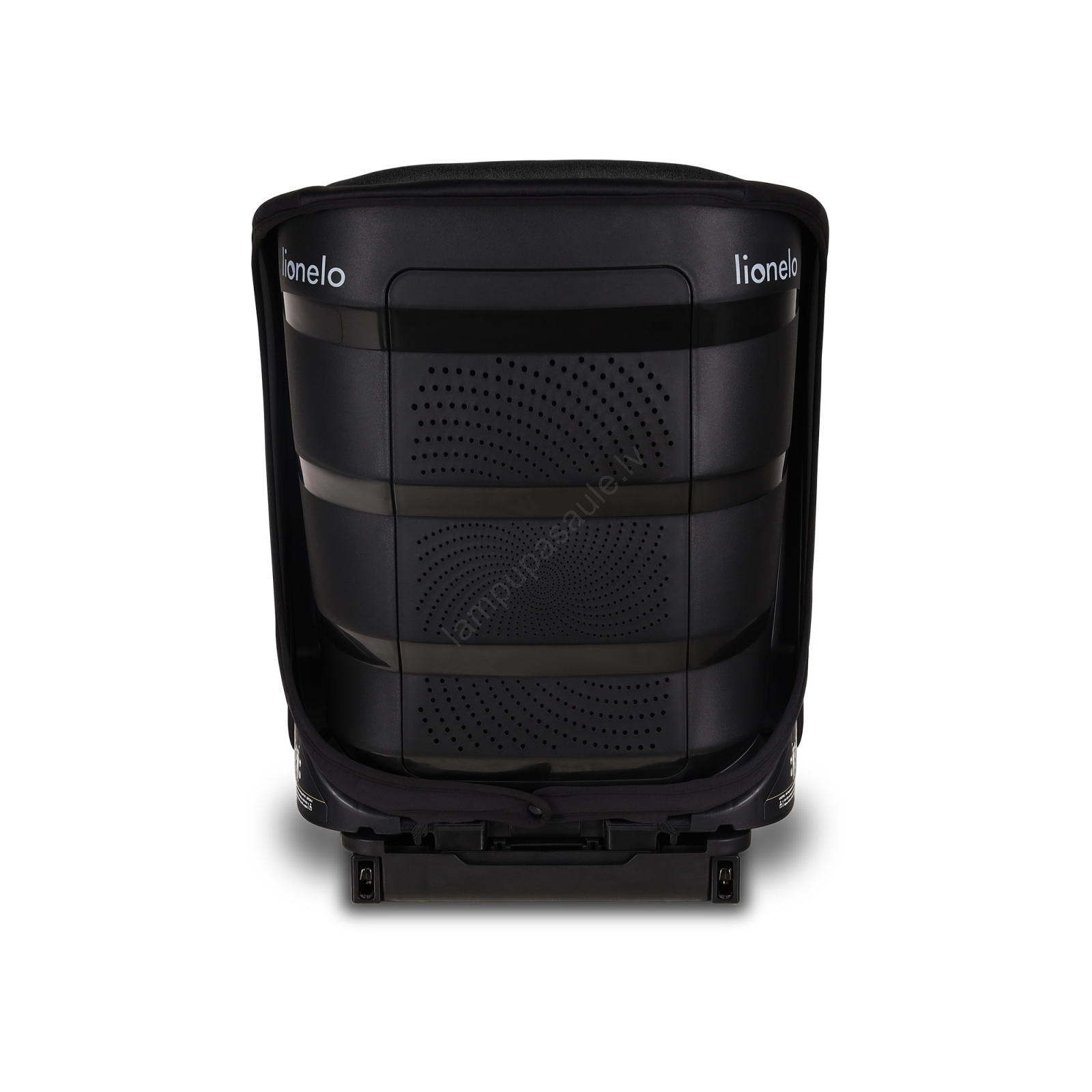 • Saderīgs ar ISOFIX sistēmu, taču to var arī piestiprināt, izmantojot automašīnas trīspunktu drošības jostas.