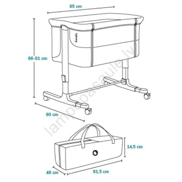• Kompakti izmēri salocītā veidā un pievienotā pārnēsāšanas soma ar rokturiem ļauj gultiņu ērti paņemt līdzi.